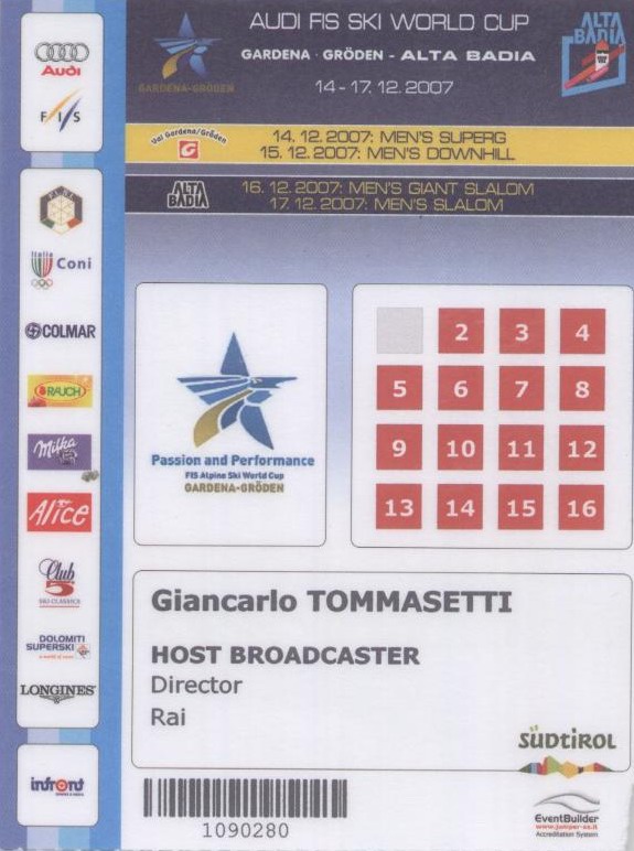 2003 la città mi ha attribuito una medaglia d'oro. Grazie. Regia e coordinamento di regia (tre registi) dei GP di F1 a Imola e Monza Inoltre: Nazionale, Coppa